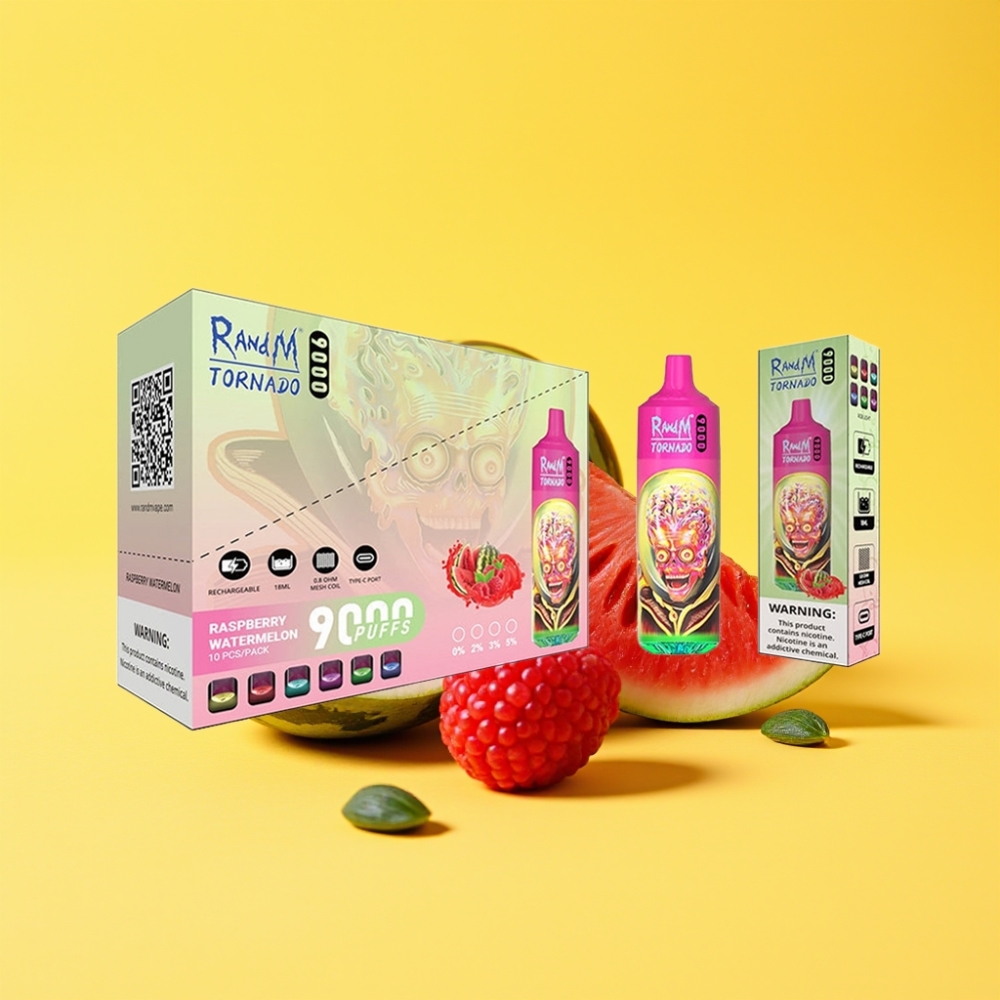 RandM Fumot Tornado 9000 Puffs 850 mAh Málna Görögdinnye Mesh Coil RGB Kijelző