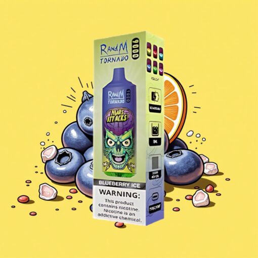 RandM Tornado 9000 Puffs Újratölthető 850 mAh Áfonya Jég Mesh Coil RGB Kijelző