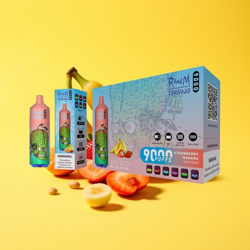 RandM Tornado 9000 Puffs Újratölthető Epeper Banán Mesh Coil RGB Kijelző